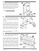 7 Thread the two #10-24 x 7/16” square head set screws [N] into the tapped holes in the pivot blocks [P]. Slide the pivot blocks into the top and bottom rails of the glass door panel [L] with the stainless steel pins toward the pivot side of the door (see details). Measure the distance from wall to wall directly above the curb (Dim. “A”). Deduct 3 ¾” from this amount and position the pivot pins this exact distance (Dim “B”) from the strike edge of the glass.