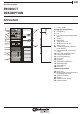 EN Use and Care guide PRODUCT DESCRIPTION APPLIANCE 2 3 4 5 8 9 10 11 12 13 14 21 22 23 24 25 15 6 7 16 17 18 19 20 1 1. Control panel Refrigerator compartment 2. LED lighting 3. Fan 4. Fan cover and antibacterial filter area 5. Shelves 6. Bottle rack 7. Cheese box + Lid 8. Multi-flow cold air area 9. Sensor cover 10. Cooler compartment (best for meat and fish) 11. Rating plate with commercial name 12. Fruits and vegetables crisper 13. Fridge drawer divider 14. Door reversibility kit 15. Door trays 16.