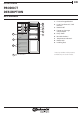 EN Use and Care Guide PRODUCT DESCRIPTION APPLIANCE 5 6 7 8 1 2 3 1. Fruit and vegetable bin* 2. Food Care Zone 0°C / Safe Defrost* 3. Bottle shelf* 4. Freezer and storage compartment 5. Dairy Shelf * 6. Movable shelves* 7. Temperature ındicator* 8. Bottle rack* 9. Levelling feet 4 9 * Varies by number and/or position, available only on certain models.