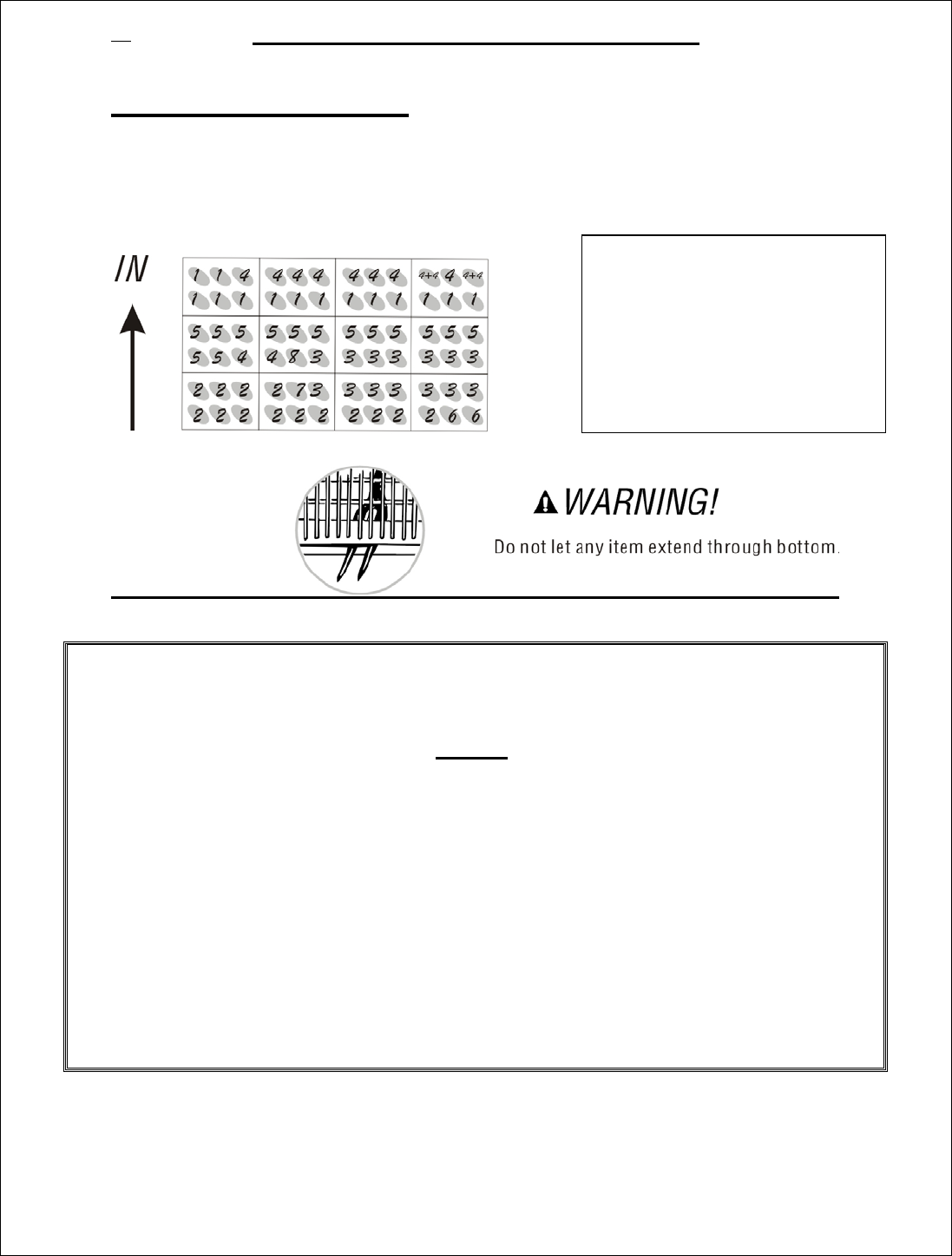DOWNWARD (AT THE BOTTOM). VERY LONG UTENSILS (LADLES, etc.) SHOULD BE PLACED