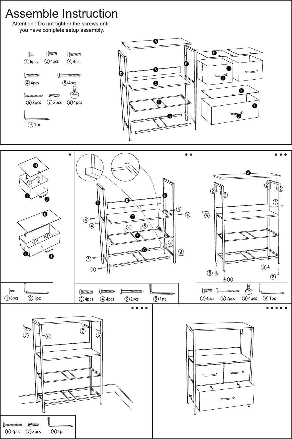 Assemble Instruction Attention : Do not tighten the screws until you have complete setup assembly.
