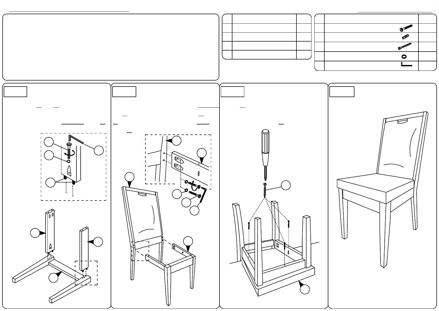 from the carton. See hardware and furniture part list for guidance. Be sure you