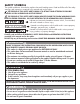 REGULATOR HOSE ASSEMBLY WARNING • The pressure regulator hose assembly supplied with this product must be used. • Clean and inspect the hose before each use for any evidence of abrasion, wear, cuts or leaks. Hose must be replaced prior to use if any of these issues are found. Only use manufacturer recommended replacement assembly. • Replace regulator hose assembly at least every two years. • Keep the fuel supply hose away from any heated surface.