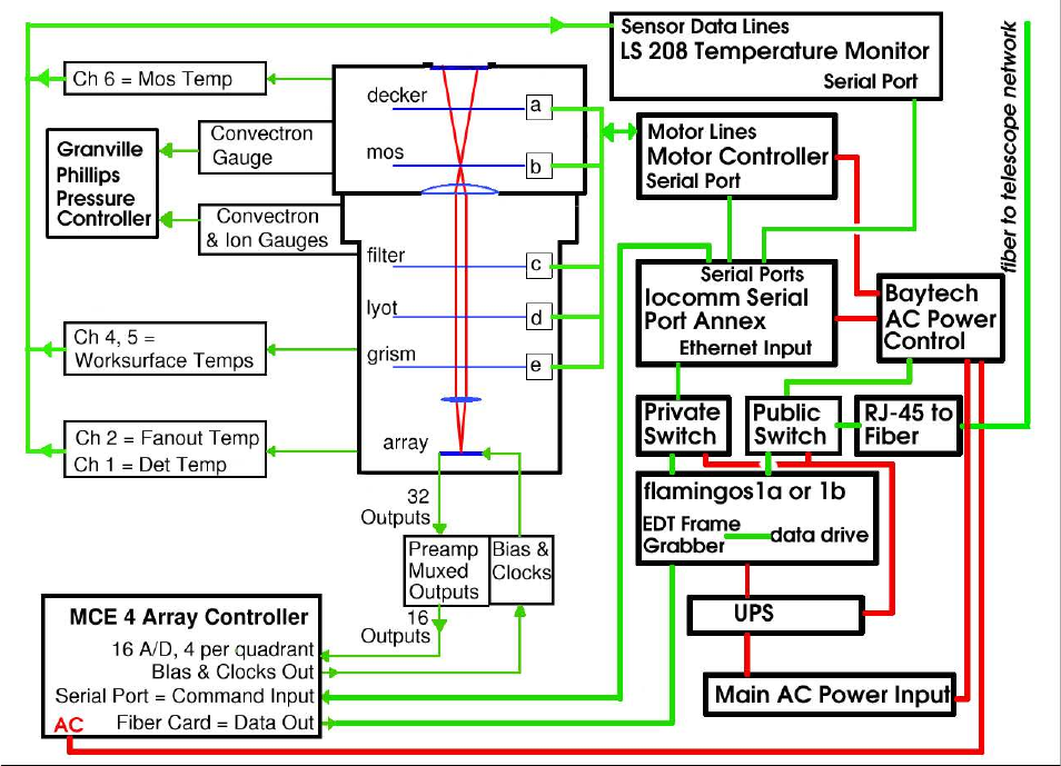 Figure 1. FLAMINGOS Functional Diagram. The relative layout and connnections between the various parts of