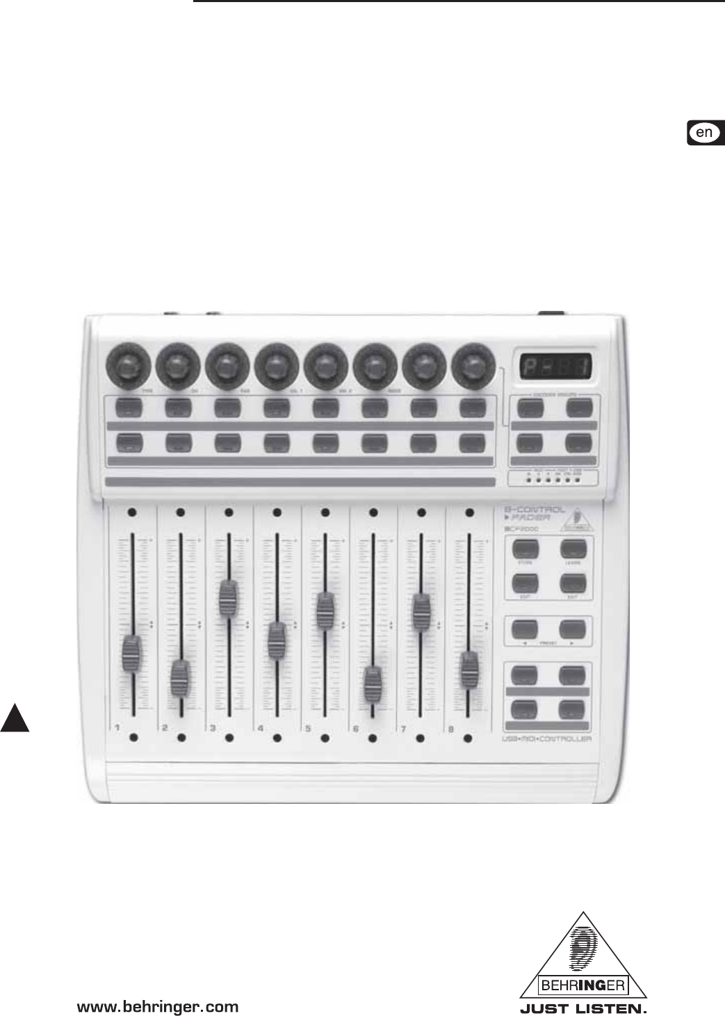B-CONTROL FADER BCF2000-WH B-CONTROL FADER Total Recall USB/MIDI Controller Desk with 8 Motorized Faders BCF2000-WH V Unique, total recall cascadable desktop MIDI controller with analog feel and an intuitive user interface V 8 ultra-precise 100-mm motorized faders for ultimate control of virtual mixers, organ-drawbars (inverse mode) or virtual synths and samplers V 4 virtual groups with 8 dual-mode, high-resolution encoders that feature LED rings and an additional push function V 16 + 4 illuminated b