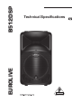 EUROLIVE B512DSP EUROLIVE Digital Processor-Controlled 600-Watt 12" PA Speaker System with Integrated Mixer B512DSP s High-power 600-Watt 2-way PA sound reinforcement speaker system with integrated mixer for live and playback applications s State-of-the-art 24-bit digital signal processor for ultimate system control: - Digital crossover, phase and time correction for perfect driver alignment plus dual compressor/limiter for total system protection - Digital noise gate, low-cut filter, 2-band EQ, dynami