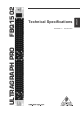 ULTRAGRAPH PRO FBQ1502 SPECIFICATIONS $8',2 ,13876 8/75$*5$3+ 352 )%4 8/75$*5$3+ 352 )%4 8/75$*5$3+ 352 )%4 RF-filtered, servo-balanced XLR and 1/4" TRS connectors INPUTS Impedance 40 kΩ balanced and unbalanced Maximum input level +21 dBu balanced and unbalanced typ.