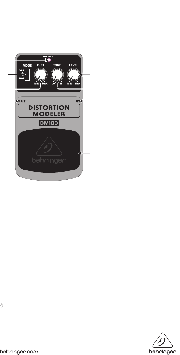 Thank you for showing your condence in us by purchasing the BEHRINGER DISTORTION MODELER DM100.