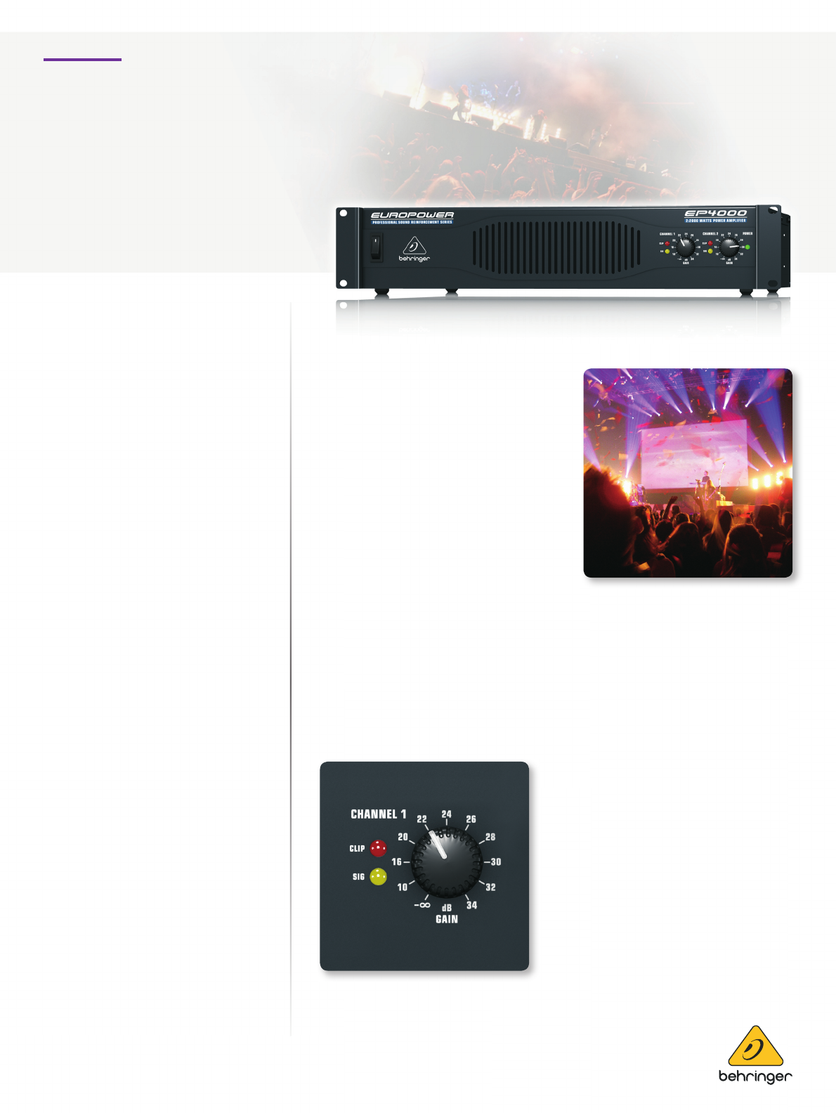 2 x 1,400 Watts @ 4 Ohms; 4,000 Watts @ 4 Ohms in Bridge mode), the EP4000