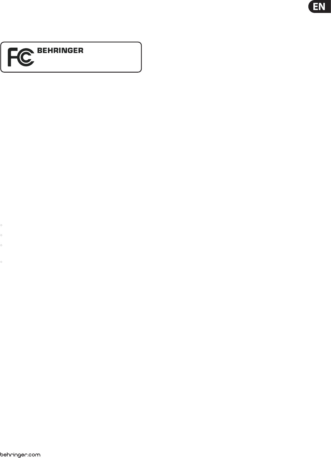 Changes or modications to the equipment not expressly approved by MUSIC Group