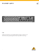 10 クイックスタートガイド S16 技術仕様 S16 はじめに ステップ 3: はじめに 処理 電源を入れる前にすべてのオーデ ィオおよびデジタルの接続を確 認します。 電源を投入します。 A/D-D/A 変換 (Cirrus Logic A/D CS5368、 D/A CS4385) ネットワーク I/O レイテンシ (ステージボックス入力 > コ ンソール処理* > ステージボックス出力) PHONES にヘッドフォンを接続し ます。MONITORING LEVEL ノブを通 ます。 常のリスニングレベルまで上げ CONFIG ボタンを押したままにす Midas によって設計された XLR 入力、プログラム可能なマイ クプリアンプ XLR 出力 電話出力、 1/4" TRS AES50 ポート、 SuperMAC、 NEUTRIK etherCON P-16 コネクタ、 Ultranet (電源なし) MIDI 入力 / 出力 ADAT Toslink 出力(2x 8 Ch) USB タイプ B 、リアパネル、システムアップデート用 • SN MASTER では S16 を
