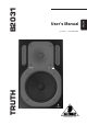 TRUTH B2031 1. INTRODUCTION Congratulations! With our new BEHRINGER TRUTH B2031 you have purchased one of the best high-resolution active studio monitors available. It is a tool that reproduces your program material with highest fidelity and balance, positioning sound sources accurately on the stereo basis. We recommend that you experiment with your B2031 away from the pressures of a recording session, in order to get a feel for it.