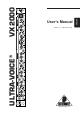 ULTRA-VOICE VX2000 1. INTRODUCTION Thank you very much for expressing your confidence in BEHRINGER products by purchasing the ULTRA-VOICE VX2000. With the ULTRA-VOICE you now own a very useful device that allows you to creatively enhance your music. With its professional features, the VX2000 produces impressive results both in a studio environment and in live applications.