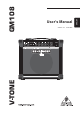 V-TONE GM108 FOREWORD 1. INTRODUCTION Dear musician, first of all, congratulations on selecting this BEHRINGER guitar amp. The V-TONE GM108 is indeed a truly grown-up modeling amp. As such, it will provide you with loads of pure pleasure. Had somebody claimed a couple of years ago that you could get such a feature-rich modeling amp at such an unbelievable price, he would have been made fun of.