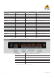 Encoder Assign turn: for selected channel EQ (Bus) page 2/2 1: select chan. 2: page select 3: Q1 4: Q2 5: Q3 6: Q4 7: Q5 8: Q6 push: push + turn: — 1: — 2: Bus-EQ mode 3: Band Type1 4: Band Type2 5: Band Type3 6: Band Type4 7: Band Type5 8: Band Type6 push + REC: — SEND (to Buses) Send Level 1-6 / Pan 4, 6, 8 for stereo buses — — — PLUG-IN (send to FX) 5: Send to FX1 6: Send to FX2 7: Send to FX3 8: Send to FX4 — — — INST (Noise Gate) page 1/3 1: select chan.