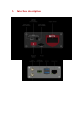 . LED and Screen Indicator Description Indicator type Indicator status Description OFF Non Power LED Blinking System Start LED Green Powern On LED Screen IP address BT Cloud and wifi Screen IP address BT Cloud and wifi press BT BUTTON 5 seconds will turn on Bluetooth Click the BT button and the screen will display the Ethernet IP and device status