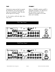 TAPE: STANDBY: On both the remote and the front panel, the TAPE button will cycle through the input to be routed to the Tape Out jacks and a Tape Out Off setting. When in STANDBY mode the red LED is engaged, the display is off and the outputs are muted. The unit remains warmed up and ready for use when taken out of standby. It is also used to scroll to the right in the setup menu. PRe2 Back Panel PRe2P Back Panel © 2002-2004 bel canto design, Ltd.