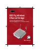 P74397_F5D7330_man.qxd 10/28/03 10:08 AM Page 2 OVERVIEW Features The Bridge complies with the IEEE 802.11g standard in order to communicate with other 802.11b- and 802.11g-compliant wireless devices at 11Mbps and 54Mbps. 802.11g products run at speeds of up to 54Mbps and operate on the same 2.4GHz frequency band as 802.11b Wi-Fi products. • 2.