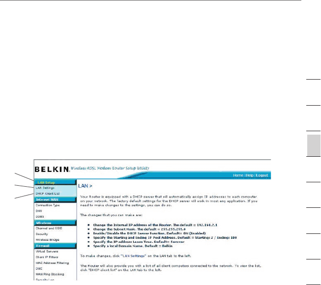 All settings for the internal LAN setup of the Router can be viewed and changed