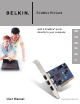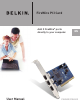 Overview Features • Three external 400 Mb/ps IEEE 1394 ports • IEEE 1394a Rev 5 compliant • Internal auxiliary power connector • IT/AT FIFO Buffers – 4k/2k • IR/AR FIFO Buffers – 4k/2k EN Specifications • OHCI 1.0 Compliant • PCI 2.1 and 2.2 compliant Package Contents • Belkin IEEE 1394 PCI card • Installation CD • User’s Manual Minimum Recommended System Requirements: • 266 Mhz Pentium II • 32 Megabytes RAM • One Free PCI 2.