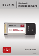 Wireless G Notebook Card Belkin Tech Support UK: 0845 607 77 87 Europe: www.belkin.com/support Belkin Ltd. Express Business Park Shipton Way, Rushden NN10 6GL, United Kingdom +44 (0) 1933 35 2000 +44 (0) 1933 31 2000 fax Belkin SAS 130 rue de Silly 92100 Boulogne-Billancourt, France +33 (0) 1 41 03 14 40 +33 (0) 1 41 31 01 72 fax Belkin GmbH Hanebergstrasse 2 80637 Munich Germany +49 (0) 89 143405 0 +49 (0) 89 143405 100 fax Belkin Iberia C/ Anabel Segura, 10 planta baja, Of.