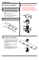 Installation (suite) 4 Removing the protective caps 5 Installing the valve bodies □ Remove the protective caps (P). Loosen the flanges (Q) from the valve bodys (R & S). Adjust the rubber washers (T), metal washers (U) and mounting nuts (V) to the bottom of valve bodys (R & S). P Q □ À partir du dessous de la plaque, insérez le robinet d’eau froide (S) à l’aide de la rondelle en caoutchouc (T), de la rondelle en métal (U) et de l’écrou de montage (V) à travers le trou du côté droit (froid).