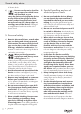General safety advice / Starting operation Safety instructions specific to the tool J Check the condition of the device, charger 11 , lead 12 and plug 13 before starting to charge the device. Do not use the tool if any of the parts are damaged. Never open the tool. Repair or replacement must only be carried out by the Service Office or an electrical expert. Damaged tools, mains cables or mains plugs pose a danger to life as a result of electric shock.