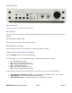 HPA2TM Headphone Outputs Number of Headphone Outputs Output Connectors Output Impedance Output Level Control Output Level Range (at 0 dBFS) into 60-Ohm Load Maximum Output Current Overload Protection (independent per channel) Bandwidth THD+N 2 ¼” TRS with switch on left-hand jack < 0.11 Ohms Stereo Control on Front Panel Off to +17 dBu 250 mA Current limited at 300 mA, Thermal > 500 kHz -106 dB, 0.0005% into 30 Ohms at +18 dBu (1.