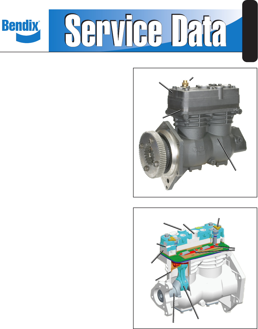 SD-01-700 BENDIX® BA-922® COMPRESSOR DESCRIPTION The function of the air compressor is to provide and maintain air under pressure to operate devices in the air brake systems. The Bendix® BA-922® compressor is a two cylinder reciprocating compressor with a rated displacement of 31.6 cubic feet per minute at 1250 RPM. The compressor consists of a water cooled cylinder head, cooling plate, valve plate assembly and an integral air cooled crankcase and cylinder block.