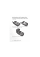 Installing a Battery and Charging the Phone 1. With the battery's metal contacts facing down, push the battery toward the top of the battery bay and then press down to click the battery in place. 2. Place the battery cover on the back of the phone and slide toward the top of the phone to click the cover in place. 3. Plug the charger into a power outlet.