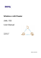 Chapter 1. Introduction 1.1 Product Introduction The AWL700 Wireless LAN Router can be used with wireless networking client devices such as the BenQ AWL100 Wireless LAN PC Card and BenQ AWL300 Wireless LAN USB Adapter for wireless access to an office LAN, or sharing of an xDSL/cable modem. The AWL700 also integrates a 4-port auto-sensing crossover Ethernet switch, expanding access to already established wired networks, and allowing IP sharing without the need for additional devices.
