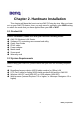 Notice I Copyright Statement This manual cannot be reproduced in any form or by any means or used to make any derivative such as translation, transformation, or adaptation without the prior written permission of BenQ Corporation. BenQ Corporation reserves the right to change this manual and the specifications to improve products without prior notice. So you can get the most recent software and user documentation for all BenQ Wireless LAN products on our web site. http://www.BenQ.