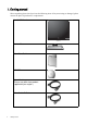 1. Getting started When unpacking please check you have the following items. If any are missing or damaged, please contact the place of purchase for a replacement. BenQ LCD Monitor Monitor Base Quick Start Guide CD-ROM Power Cord (Picture may differ from product supplied for your region.