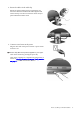 4. Route the cables via the cable clip. Release the cable retaining clip by squeezing the clip inwards as illustrated. Position the cables together and reinsert the clip over them to retain the cables neatly in place behind the monitor stand. 5. Connect-to and turn-on the power. Plug the other end of the power cord into a power outlet and turn it on. Picture may differ from product supplied for your region. Turn on the monitor by pressing the power key.