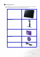 Adapter USB Cable Signal Cable: D-Sub Signal Cable: DVI-D Audio Cable (optional) Speaker Unit: SRS (optional) Webcam Unit (optional) 6 Getting started