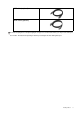 H. Position V. Position Pixel Clock Adjusts the horizontal position of the screen image. Adjusts the vertical position of the screen image. Adjusts the pixel clock frequency timing to synchronize with the analog input video signal. Not applicable to a digital input signal. 0 to 100 0 to 100 0 to 100 Press the t or u keys to adjust the value. See also: Picture optimization on page 22 Phase Adjusts the pixel clock phase timing to synchronize with the analog input video signal.