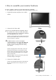 3. How to assemble your monitor hardware If the computer is turned on you must turn it off before continuing. Do not plug-in or turn-on the power to the monitor until instructed to do so. 1. Unpack the monitor and place it on a stable surface. 2. Connect the PC video cable. Either Do not use both DVI-D cable and D-Sub cable on the same PC. The only case in which both cables can be used is if they are connected to two different PCs with appropriate video systems.