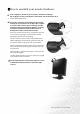 4. Route the cables via the cable clip. Release the cable retaining clip by squeezing the clip inwards as illustrated. Position the cables together and reinsert the clip over them to retain the cables neatly in place behind the monitor stand. 5. Connect-to and turn-on the power. Plug the other end of the power cord into a power point and turn it on. Turn on the monitor by pressing the power button on the front of the monitor.