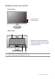 Getting started When unpacking please check you have the following items. If any are missing or damaged, please contact the place of purchase for a replacement. BenQ LCD Monitor Monitor Stand (for models without height adjustment stand) Monitor Base (for models without height adjustment stand) Monitor Base (for models with height adjustment stand) Quick Start Guide CD-ROM Power Cord (Picture may differ from product supplied for your region.