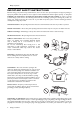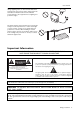 User’s manual For added protection for this television equipment during a lightning storm, or when it is left unattended and unused for long periods of time, unplug it from the wall outlet and disconnect the antenna. This will prevent damage to the equipment due to lightning and power-line surges. An outside antenna system should not be located in the vicinity of overhead power lines or other electric light or power circuits, or where it can collide with such power lines or circuits.