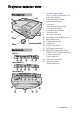Projector exterior view 1. Front/upper side 5 1 2 6 7 3 8 4 Rear/lower side (MP515) 2. 3. 4. 5. 6. 7. 8. 9. 10. 11. 12. 13. 14. 15. 16. 17. 14 15 16 17 18. 19. 19 (MP525/MP575) 14 15 16 17 16 17 External control panel (See "Controls and functions" on page 10 for details.