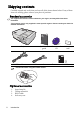 Table of contents Important safety instructions .........................3 Introduction........................7 Projector features .................................. 7 Shipping contents.................................. 8 Projector exterior view .......................... 9 Controls and functions ....................... 10 Positioning your projector............................14 Choosing a location............................. 14 Obtaining a preferred projected image size .................................