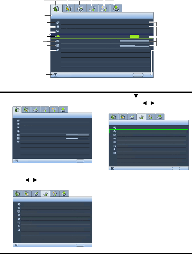 The projector is equipped with On-Screen Display (OSD) menus for making various