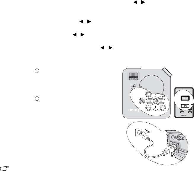 projector, the fans will run for a few minutes to cool down. Press Power again to start the