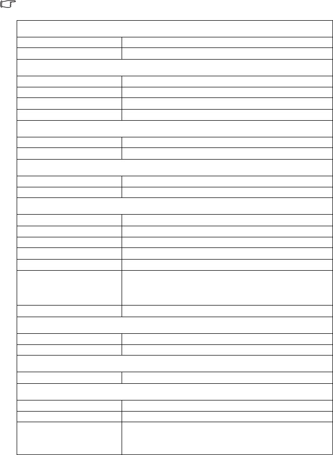 Projector specifications