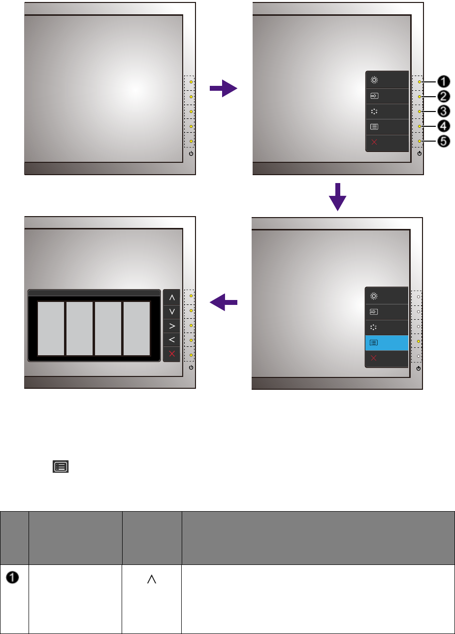 All OSD (On Screen Display) menus can be accessed by the control keys. You can use the OSD