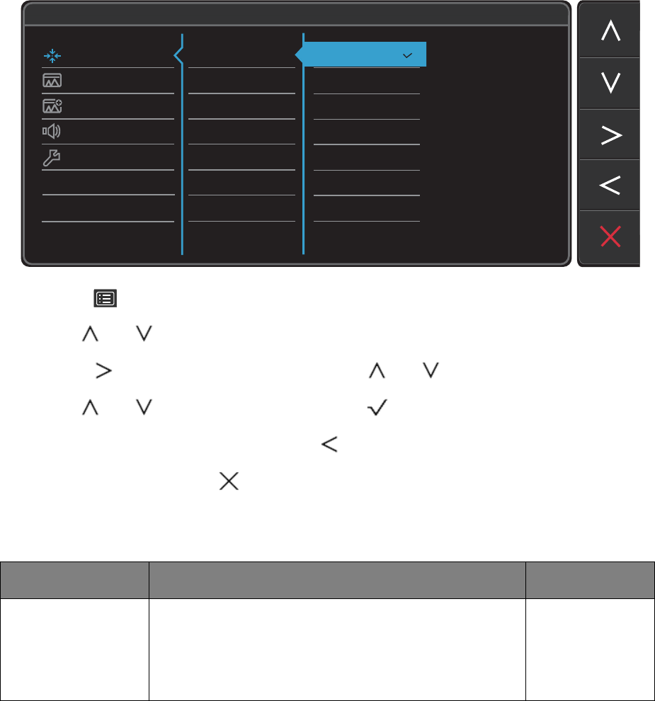 3. Select to go to a sub menu, and then use or to select a menu item.