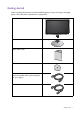 Getting started When unpacking please check you have the following items. If any are missing or damaged, please contact the place of purchase for a replacement. BenQ LCD Monitor Monitor Base Quick Start Guide CD-ROM Power Cord (Picture may differ from product supplied for your region.