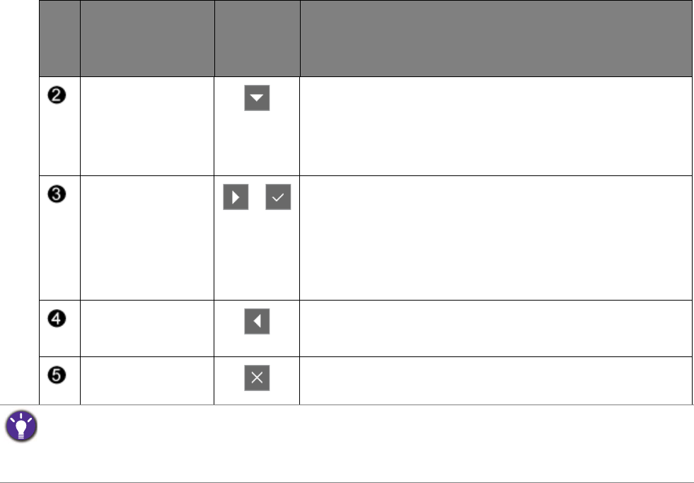 • For Down/Decrease adjustment.