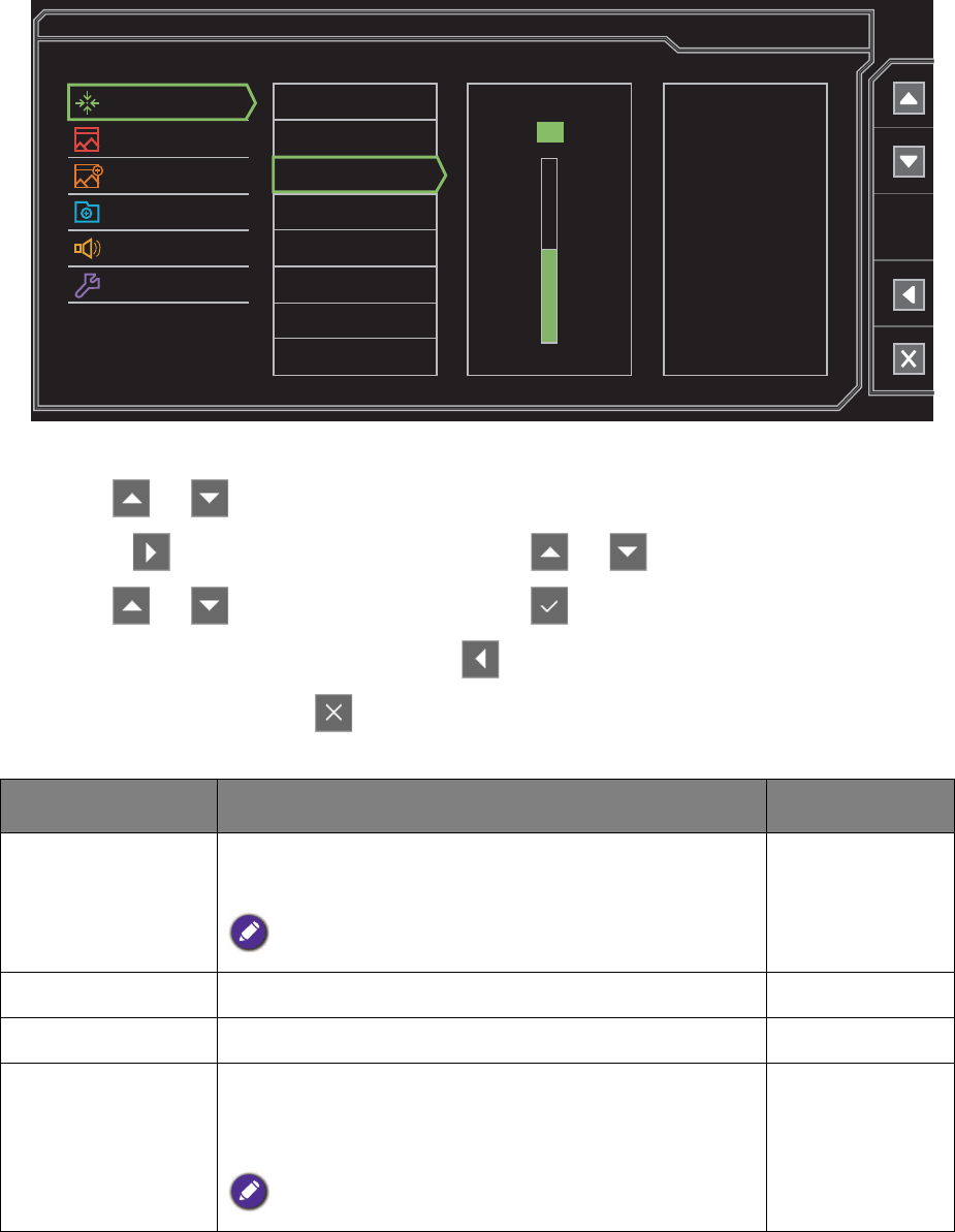 Available menu options may vary depending on the input sources, functions and settings. Menu